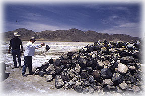 Traditionally everyone crosssing the salt flats has to add a rock to this pile