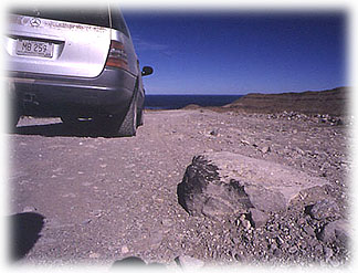 The picture above shows the most common problem for dirt road travelers - rocks sticking out of the ground. Notice the entirely blackened left side of the rock - blackened by tires hitting and grazing it. Hit by right tires - as you may have noticed. An off center hit will most definitely destroy your tire.